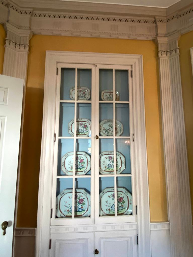As I mentioned before, this room was added on in the early 1900’s, but is still stunning. It was quite a surprise during the tour, I wasn’t expecting to see such grandeur as we came around the corner. The cheery color, the beautiful china cabinets and all the natural light must have made for a gorgeous setting for any meal.